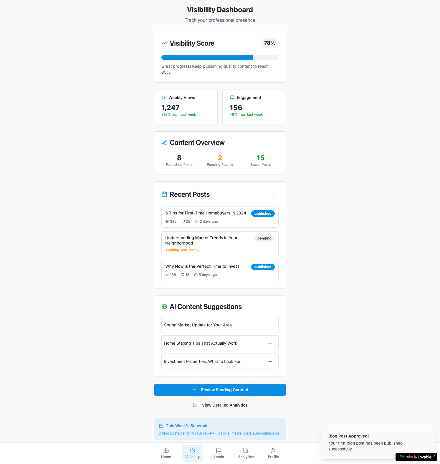 Real estate agents often struggle to maintain a consistent and engaging presence on social media due to the time and effort required to create personalized content. Despite knowing the value of visibility for building trust and generating leads, many agents fail to post regularly, especially on platforms like Facebook where their audience actively engages.